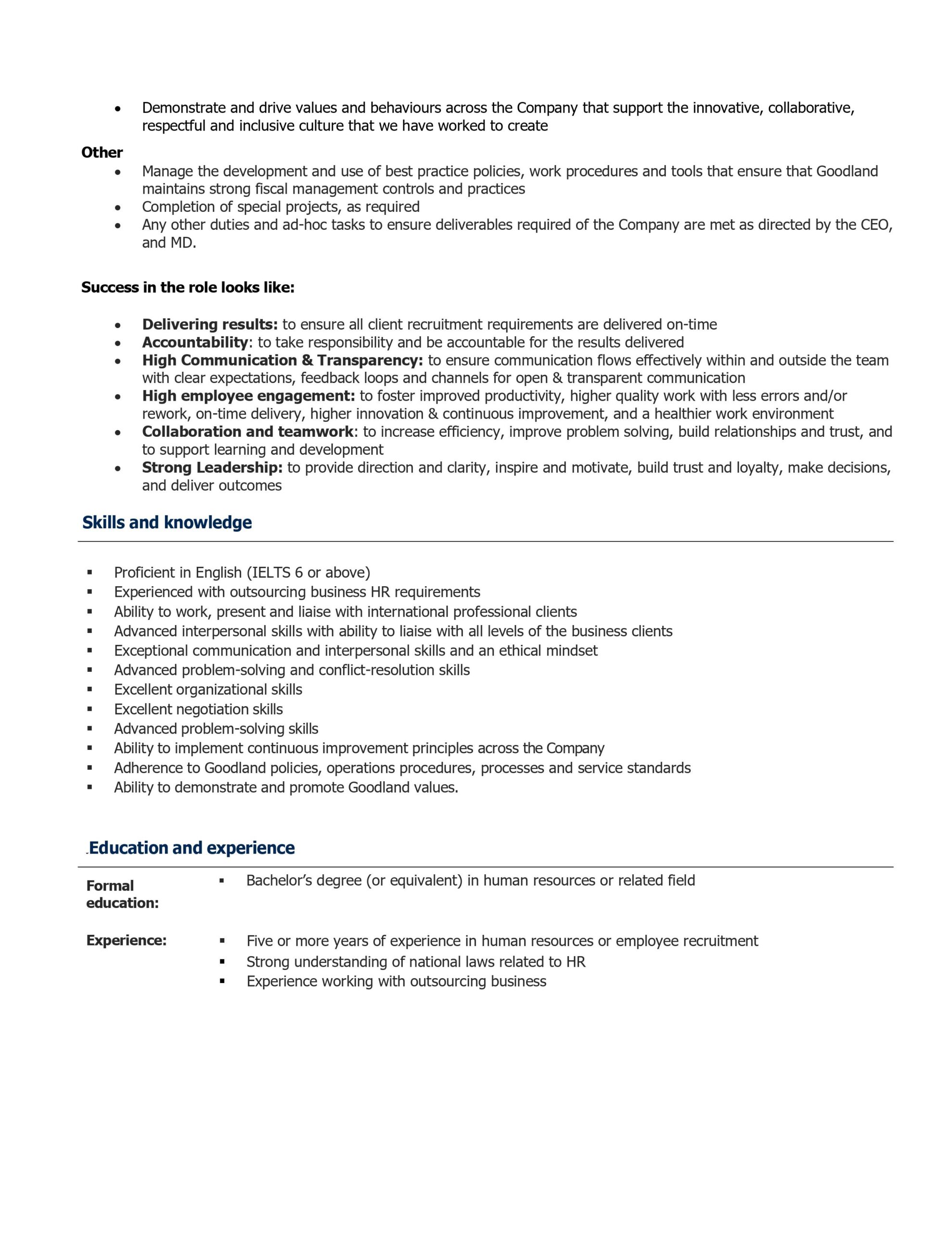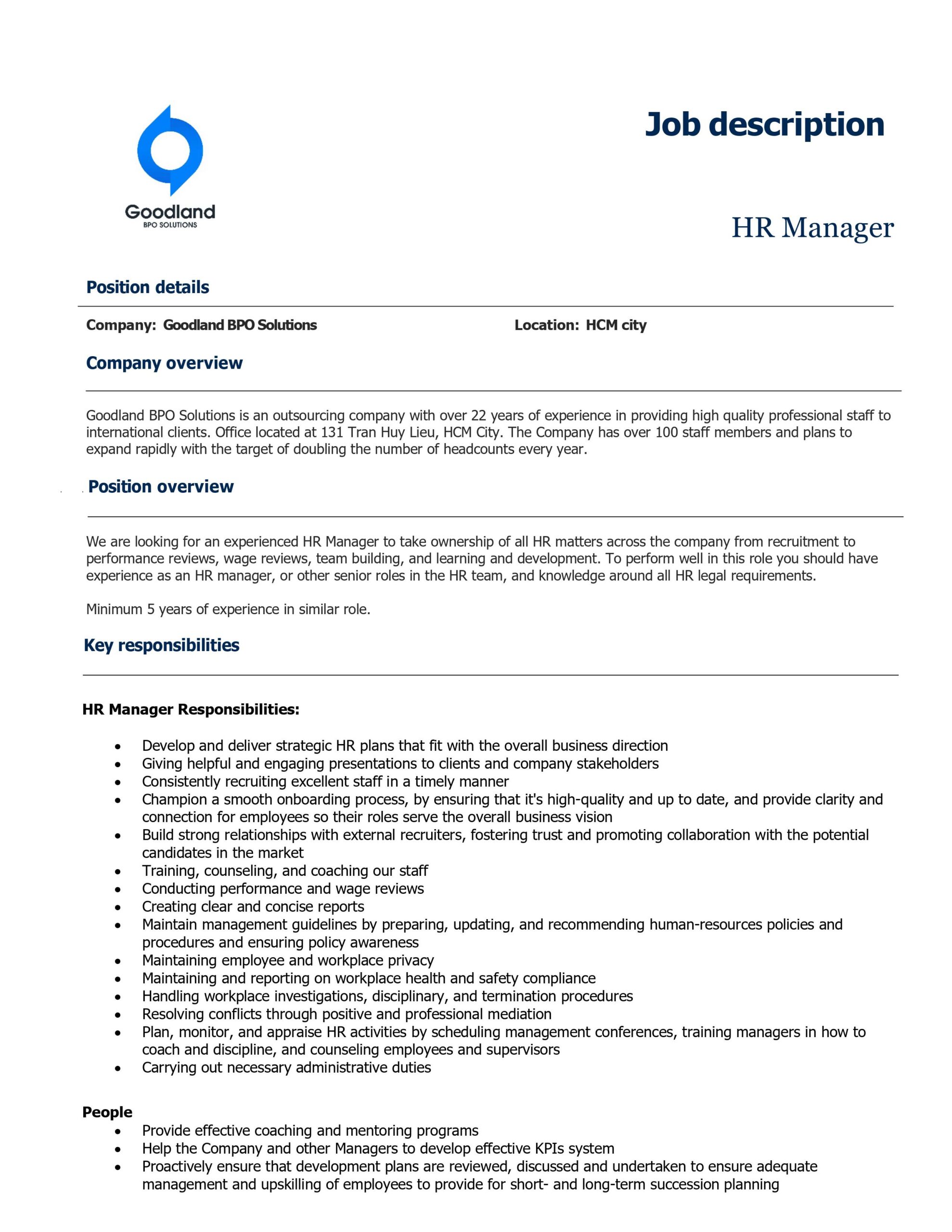 GoodLand- HR Manager Job Description